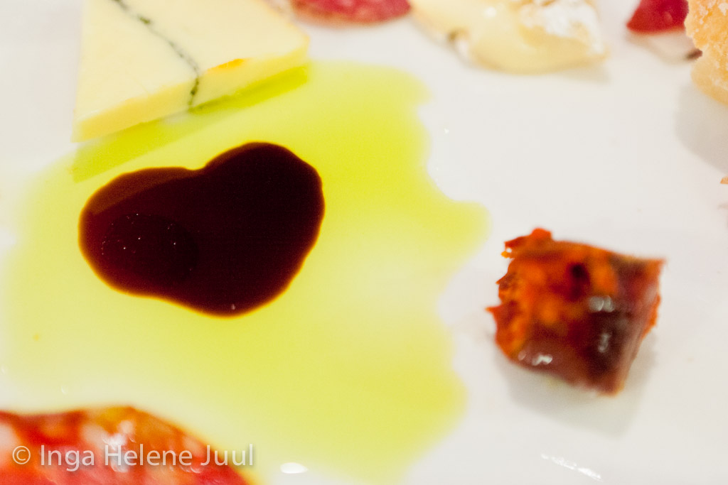 Dagens måltid ble forøvrig en kjærlighetserklæring. Balsamicoeddiken formet et hjerte i olivenoljen. Hjertet velger jeg å dedikere til Mannen, som har har holdt ut med alle mine nevrotiske krumspring fram mot førerkortet. Tusen takk, Tom!